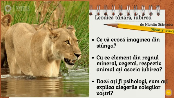 Leoaică = animal de pradă: ferocitate, senzualitate tânără = amplificare a trăsăturilor iubirea = relația dintre iubit-iubită sau dintre poet-poezie