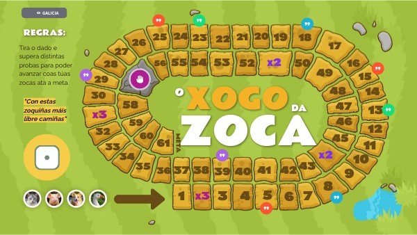 Tira o dado e supera distintas probas para poder avanzar coas túas zocas ata a meta.