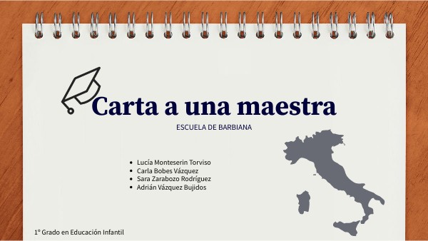 Este libro, en forma de epístola fue escrito por 8 alumnos de la Escuela de Barbiana. Fue publicado por primera vez en el año 1970. Carta a un Maestra es un libro que hace una denuncia contra el fracaso escolar, el fracaso de una escuela que mandaba a la calle a muchos alumnos sin haber podido conseguir ningun diploma. Lorenzo Milani (Florencia, 1923 - 1967) era un párroco italiano en Barbiana. En la escuela actuaba como pedagogo, además también era escritor. En 1941 comenzó a estudiar en la Academia de Bellas Artes de Brera. Tenía una habilidad increíble para los idiomas, Lorenzo hablaba Inglés, francés, alemán, español, latín y hebreo.