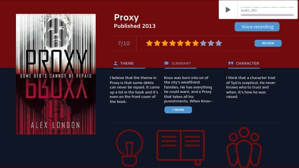 I beleive that the theme in Proxy is that some debts can never be repaid. It come up a lot in the book and it's even on the front cover of the book.
