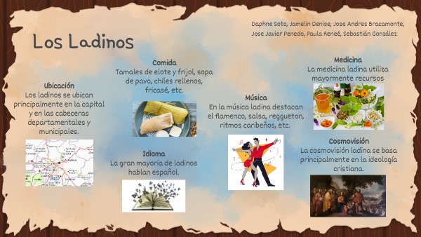 UbicaciónLos ladinos se ubican principalmente en la capital y en las cabeceras departamentales y municipales.