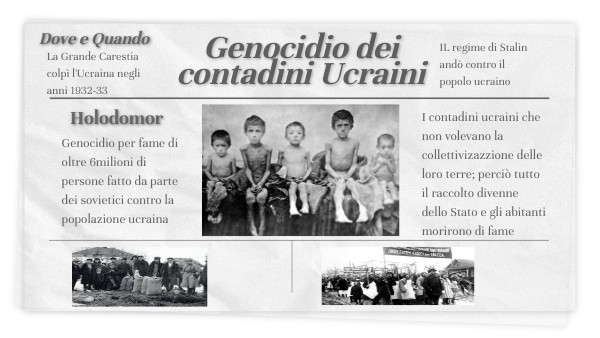 Genocidio per fame di oltre 6milioni di persone fatto da parte dei sovietici contro la popolazione ucraina