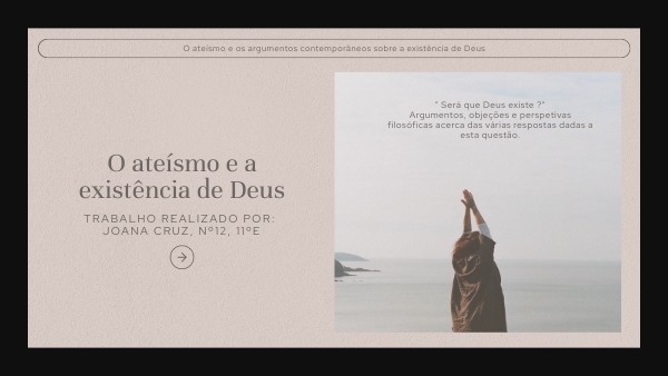 " Será que Deus existe ?"Argumentos, objeções e perspetivas filosóficas acerca das várias respostas dadas a esta questão.