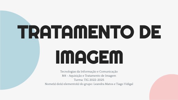 Tecnologias da Informação e ComunicaçãoM4 - Aquisição e Tratamento de Imagem Turma: TIG 2022-2025 Nome(s) do(s) elemento(s) do grupo: Leandra Matos e Tiago Vidigal