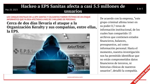los canales digitales de la EPS Sanitas y Colsanitas fueron víctimas de un ataque informático que ya deja afectadas a más de 5 millones de personas.
