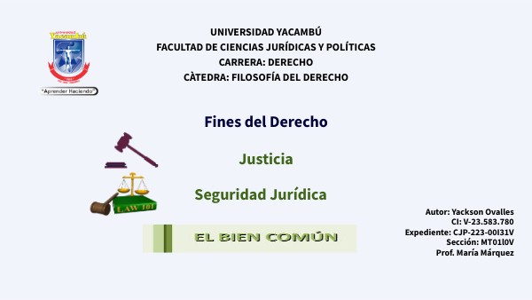 UNIVERSIDAD YACAMBÚ FACULTAD DE CIENCIAS JURÍDICAS Y POLÍTICAS CARRERA: DERECHO CÀTEDRA: FILOSOFÍA DEL DERECHO