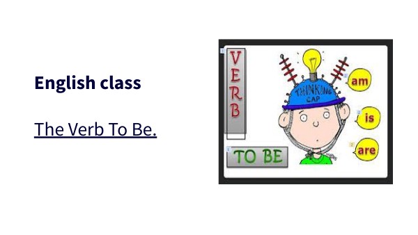 EL VERBO TO BE:Es uno de los principales verbos en Inglés. Posee dos significados; los cuales son: ser- estar. Ultiliza tres formas verbales en su conjugación (am- is- are).