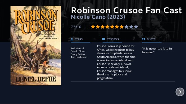 Crusoe is on a ship bound for Africa, where he plans to buy slaves for his plantations in South America, when the ship is wrecked on an island and Crusoe is the only survivor. Alone on a desert island, Crusoe manages to survive thanks to his pluck and pragmatism.