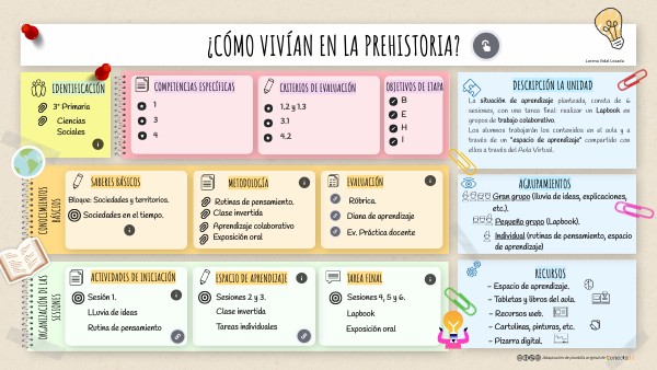 La situación de aprendizaje planteada, consta de 6 sesiones, con una tarea final: realizar un Lapbook en grupos de trabajo colaborativo.Los alumnos trabajarán los contenidos en el aula y a través de un "espacio de aprendizaje" compartido con ellos a través del Aula Virtual.