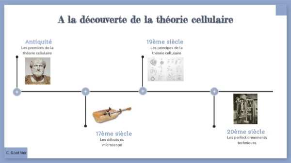 Un jour que je dînais avec M. Schleiden, cet illustre botaniste me signala le rôle important que le noyau joue dans le développement des cellules végétales. Je me rappelai tout de suite avoir vu un organe pareil dans les cellules de la corde dorsale et je saisis à l'instant même l'extrême importance qu'aurait une découverte, si je parvenais à montrer que, dans les cellules de la corde dorsale, ce noyau joue le même rôle que le noyau des plantes dans le développement des cellules végétales. […] Ces idées se présentant à mon esprit, j'invitai M. Schleiden à m'accompagner à l'amphithéâtre d'anatomie où je lui montrai les noyaux des cellules de la corde dorsale. Il leur reconnut une ressemblance parfaite avec les noyaux des plantes. [...] J'ai trouvé, à l'aide du microscope, que ces formes si variées des parties élémentaires des tissus de l'animal ne sont que des cellules transformées, que l'uniformité de la texture se retrouve donc aussi dans le règne animal, que, par conséquent, l'origine cellulaire est commune à tout ce qui vit. Discours de T. Schwann 1878