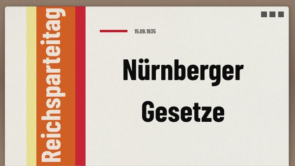 An diesem Tag werden die 3 Rassengesetze erlassen, eine wesentliche Bestimmung gegenüber dem Holocaust der folgenden Jahre.