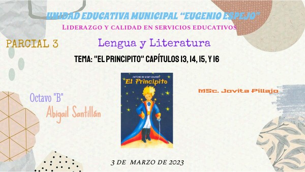 Tema: "El principito" capítulos 13, 14, 15, y 16