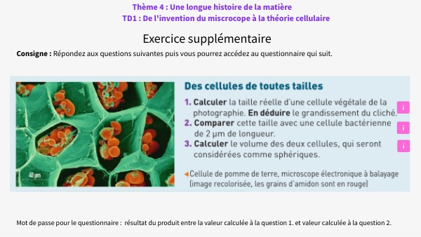 Thème 4 : Une longue histoire de la matièreTD1 : De l'invention du miscrocope à la théorie cellulaire