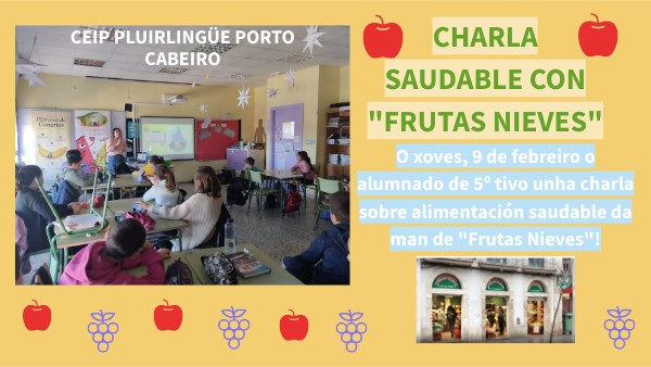 O xoves, 9 de febreiro o alumnado de 5º tivo unha charla sobre alimentación saudable da man de "Frutas Nieves"!