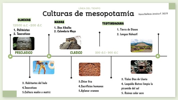 Se da una breve descripción sobre las culturas desarrolladas en Mesoamérica desde el período preclásico a posclásico
