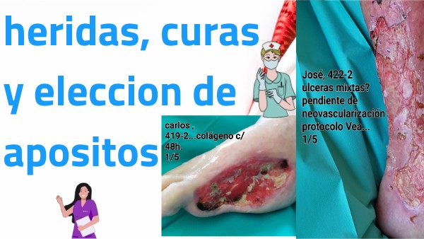 Tipos: ✔ Apósito de plata: muy útil infección por SARM (staphylococus aureus meticilín resistente (Nivel de recomendación: A+) (alginatos e hidrofibras: Biatain Ag*, Aquacel Ag*, Argencoat*) (hidrocelular: Urgocell Ag/silver*, Aquacel Ag Foam*, Biatain Ag* ) IMPORTANTE, LOS APÓSITOS DE PLATA : ● No deben utilizarse si no hay signos de infección localizada. ● No usar en heridas tratadas con desbridamiento enzimático (Iruxol* ● Se ha recomendado usar 14 días, retirar si no hay mejoría. ✔ Cadexómero yodado de liberación lenta. (Iodosord*) . Curas según exudado, debe cambiar de color de marrón a color crema, hasta 72 horas. Hay que retirar el biofilm con desbridamiento mecánico (raspado) antes de aplicar ya que el cadexómero yodado no sería efectivo. Debemos tener en cuenta las contraindicaciones. ✔ Polihexanida y betaína (PHMB, Prontosán*). Antimicrobiano con efecto analgésico. Hay que dejar actuar 10‐15 minutos. Retirar la placa de biofilm. ✔ Hipoclorito sódico/ácido hipocloroso (Microdacyn*) . ✔ Cloruro de dialquil‐carbamoilo DACC (Cutimed Sorbact*): método físico, produce atracción de las bacterias por interacción hidrófoba, no inhibe ni destruye gérmenes, sino que los adhiere. No produce resistencia ni citotoxicidad. ✔ Miel. Apósitos antibacterianos estimulan la cicatrización. Disminuye el pH. No utilizar presentaciones de uso alimentario, sólo los comercializados como productos sanitarios con sello CE.
