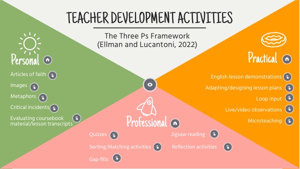 English lesson demonstrations Adapting/designing lesson plans Loop input Live/video observations Microteaching