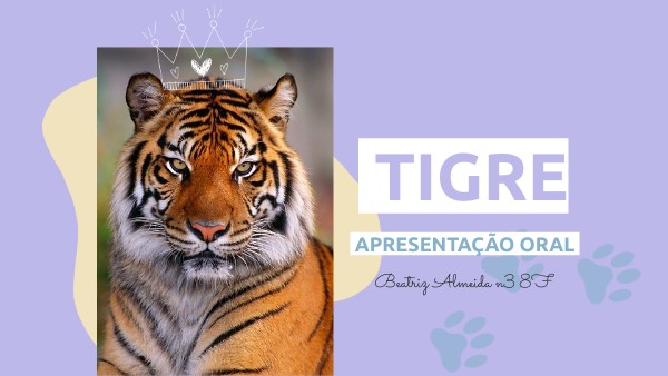 Eu escolhi o tigre para apresentar pois na minha opinião é um animal muito interessante, acho-o um animal muito bonito e gosto muito de gatos, também para espalhar a mensagem de que se os humanos continuarem com a caça ilegal, expansão agrícula, alterações climáticas,etc. o tigre pode extinguir-se por completo.