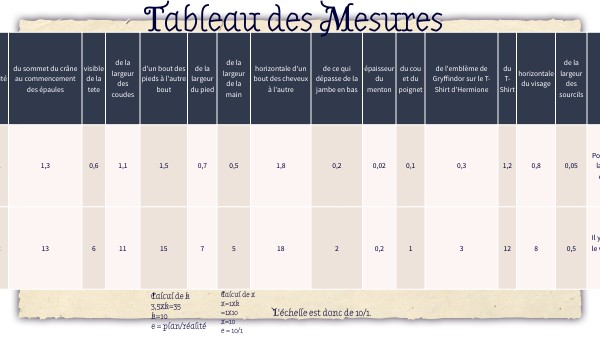 Tableau des Mesures