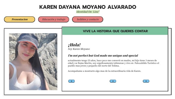 actualmente tengo 25 años, hace poco me converti en madre, mi hijo tiene 3 meses de edad y se llama Martin, soy orgullosamente tolimense y vivo en Palocabildo Turistico el pueblo mas joven y pequeño del norte del Tolima. Acompañame a mostrarte algo mas de la extraordinaria vida de Karen.
