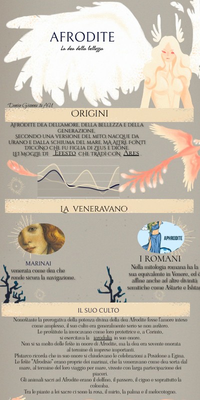 Afrodite dea dell'amore, della bellezza e della generazione, Secondo una versione del mito, nacque da Urano e dalla schiuma del mare, MA ALTRE FONTI DICONO CHE fu figlia di Zeus e Dione. LEI MOGLIE DI CHE TRADì CON .