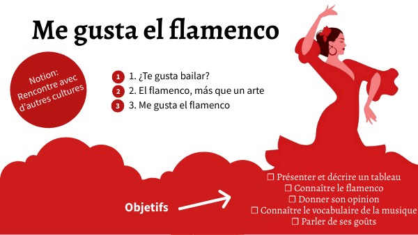 ☐ Présenter et décrire un tableau ☐ Connaître le flamenco ☐ Donner son opinion ☐ Connaître le vocabulaire de la musique☐ Parler de ses goûts