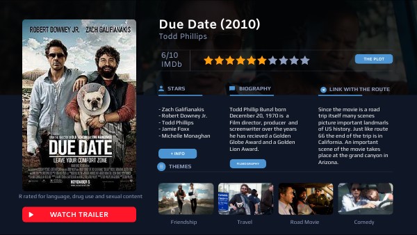 Since the movie is a road trip itself many scenes picture important landmarls of US history. Just like route 66 the end of the trip is in California. An important scene of the movie takes place at the grand canyon in Arizona.