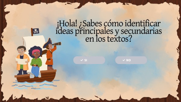 ¡Muy bien! Antes que nada, muchas gracias por tu honestidad. Ahora bien, vamos a empezar por comprender qué son las ideas principales en un texto. Primeramente es importante entender la diferencia entre ideas principales e ideas secundarias en los textos...