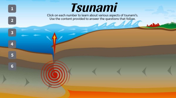 Click on each number to learn about various aspects of tsunami's. Use the content provided to answer the questions that follow.
