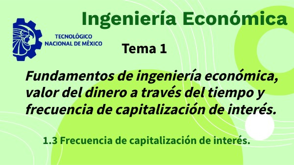 Fundamentos de ingeniería económica, valor del dinero a través del tiempo y frecuencia de capitalización de interés.