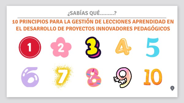 10 PRINCIPIOS PARA LA GESTIÓN DE LECCIONES APRENDIDAD EN EL DESARROLLO DE PROYECTOS INNOVADORES PEDAGÓGICOS