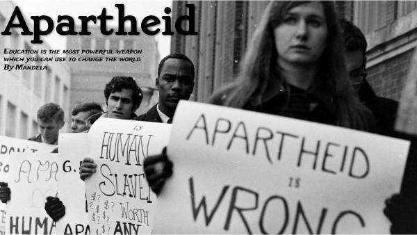 The Apartheid in South Africa was the racial segregation under the all-white government of South Africa which dictated that non-white South Africans (a majority of the population) were required to live in separate areas from whites and use separate public facilities, and contact between the two groups would be limited. The different racial group were physically separated according to their location, public facilities and social life.