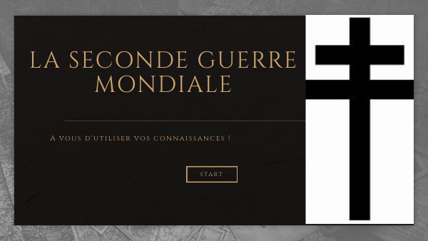 Vous êtes un jeune soldat, l'Allemagne nazi, entreprend des offensives afin de gagner la guerre. Vous devez utiliser les connaissances qui vous ont été transmises lors de votre formation à l'armée afin d'arrêter la guerre ! Jeune gens ! L'heure, tourne, les jours s'écoule, tu te dois de sauver tes comapgnons ! Pour t'aider dans ta mission, prend connaissance de la vidéo. AL