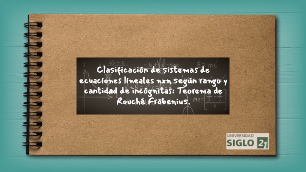 Clasificación de sistemas de ecuaciones lineales mxn según rango y cantidad de incógnitas: Teorema de Rouché Fröbenius.
