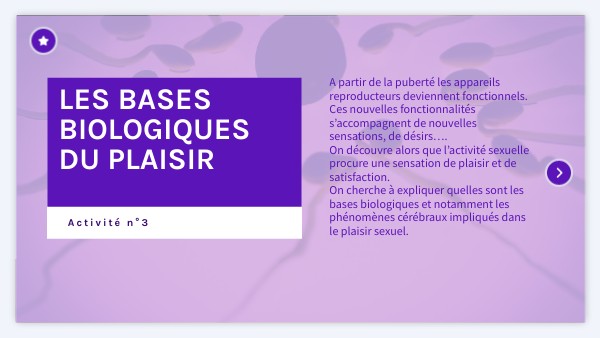 A partir de la puberté les appareils reproducteurs deviennent fonctionnels. Ces nouvelles fonctionnalités s’accompagnent de nouvelles sensations, de désirs…. On découvre alors que l’activité sexuelle procure une sensation de plaisir et de satisfaction. On cherche à expliquer quelles sont les bases biologiques et notamment les phénomènes cérébraux impliqués dans le plaisir sexuel.