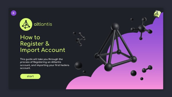 This guide will take you through the process of Registering an Altlantis account, and importing your first hedera account.