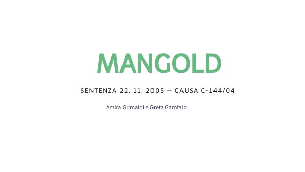 Signor MangoldII 26 giugno 2003 il sig. Mangold, che aveva all'epoca 56 anni, stipulava con il sig. Helm, che esercita la professione di avvocato, un contratto di lavoro con effetto dal 1° luglio 2003 e con scadenza il 28 febbraio 2004 (art. 5 del contratto). Viene specificato che la limitazione nel tempo del contratto si fonda sulla disposizione relativa alla facilitata conclusione di contratti a tempo determinato con lavoratori anziani (art. 14, n.3 del TzBfG) ed è la sola ragione di limitazione nel tempo del patto di durata del contratto. Secondo il sig. Mangold, il detto art. 5, laddove limita la durata del suo contratto, nonostante la limitazione sia conforme all'art. 14, n. 3 del TzBfG, è in contrasto con l'accordo quadro e la direttiva 2000/78.