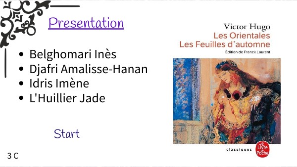 Conclusion : Victor Hugo met en avant la femme orientale de manière sensuelle. Il évoque chaque atouts et caractéristiques de la femme. En parallèle la guerre civile et toute la violennce évoqué dans le receuil, la femme orientales, voluptueuse contraste avec ses aspects du receuil. La femme orientale est comme un fantasme pour Victor Hugo, un reve.