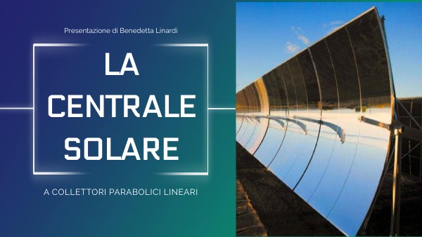 Le centrali solari termodinamiche sono tutte quelle centrali che, utilizzando una serie di soluzioni tecnologiche, sfruttano la radiazione solare per produrre energia elettrica. A differenza del solare fotovoltaico, che trasforma direttamente la radiazione solare in energia elettrica, in questa centrale la radiazione viene concentrata e utilizzata per riscaldare un fluido termovettore ( costituito da olio minerale, sali fusi, gas, ect.), che a sua volta produce energia meccanica (tramite le turbine) e poi energia elettrica. Le tre principali tecnologie solari termiche per la produzione di elettricità sono: • Sistemi a collettori parabolici lineari (le più utilizzate) • Sistemi a torre centrale • Sistemi dish-stirling