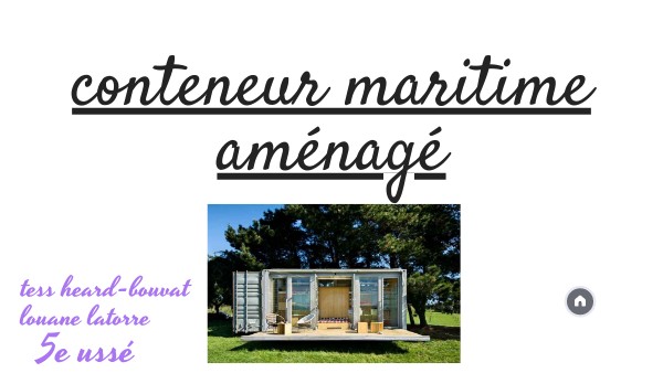 Le but de ce projet est de transformer un conteneur maritime en habitation pour un étudiant. Ce logement doit respecter des contraintes, répondre aux besoins de l'étudiant... Les pages suivantes montreront certaines étapes nécessaires.