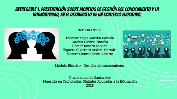 INTEGRANTES:Escobar Tapia Martha DanielaGaviria Gaviria NoraliaGómez Rosero LeodanHiguera Guerrero Andrés Hernán Montes Castro Carlos Alberto Módulo Electivo - Gestión del conocimiento Universidad de Santander Maestría en Tecnologías Digitales Aplicadas a la Educación 2023
