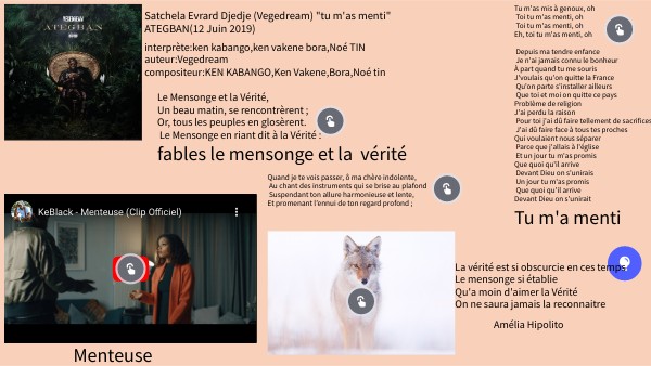 c'est une fable est reliés au deux chanson car dans les deux aucune vérité est dite que des mensonges.