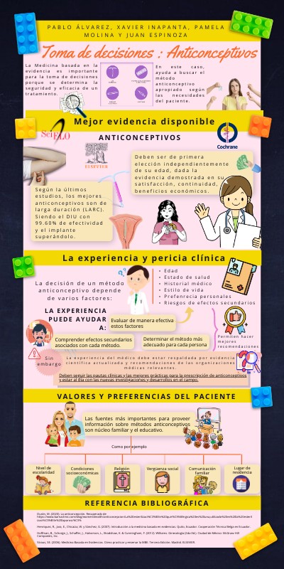 Durán, M. (2020). La anticoncepción. Recuperado de https://www.barnaclinic.com/blog/womenshealth/anticoncepcion/La%20esterilizaci%C3%B3n%20quir%C3%BArgica%20es%20una,utilizado%20es%20la%20esterilizaci%C3%B3n%20laparosc%C3% Henriquez, R., Jara, E., Chicaiza, W. y Sánchez, G. (2007). Introducción a la medicina basada en evidencias. Quito, Ecuador. Cooperación Técnica Belga en Ecuador. Hoffman, B., Schorge, J., Schaffer, J., Halvorson, L., Bradshaw, K. & Cunningham, F. (2012). Williams. Ginecología (2da Ed.). Ciudad de México: McGraw-Hill Companies, Inc. Straus, SE. (2006). Medicina Basada en Evidencias. Cómo practicar y ensenar la MBE. Tercera Edición. Madrid. ELSEVIER.