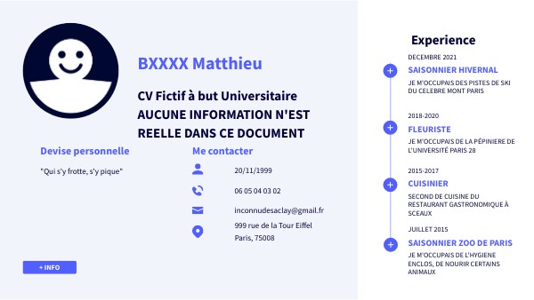 CV Fictif à but UniversitaireAUCUNE INFORMATION N'EST REELLE DANS CE DOCUMENT