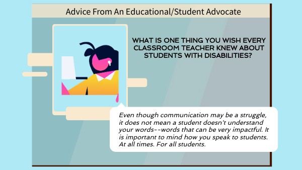 Even though communication may be a struggle, it does not mean a student doesn't understand your words--words that can be very impactful. It is important to mind how you speak to students. At all times. For all students.