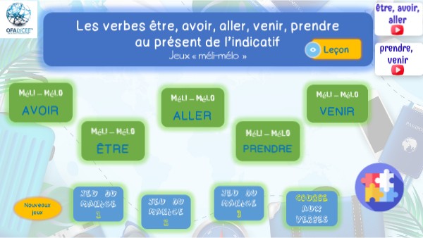Jeux des verbes être, avoir, aller, prendre, venir au présent