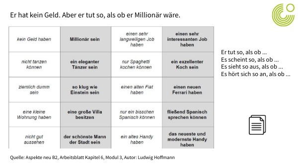 Quelle: Aspekte neu B2, Arbeitsblatt Kapitel 6, Modul 3, Autor: Ludwig Hoffmann