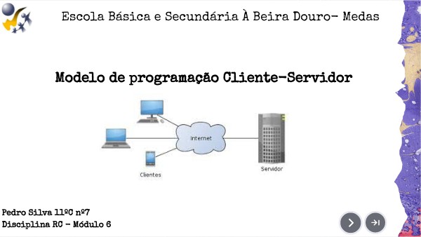 Este trabalho foi realizado no ambito da disciplina de Redes de Comunicação vou falar dos modelos de programação Cliente-Servidor, quais as vantagens e desvantagens deste modelo