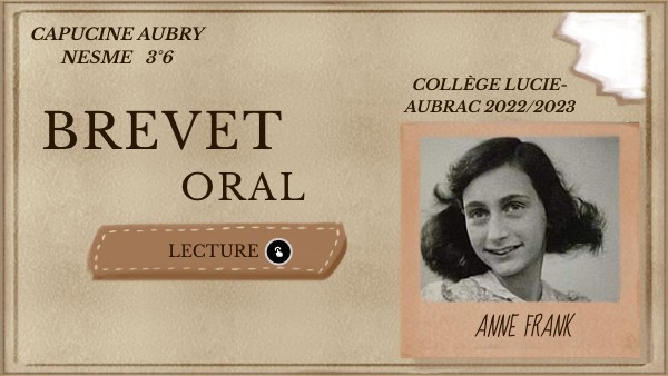 Anne Frank Oral Brevet Capucine