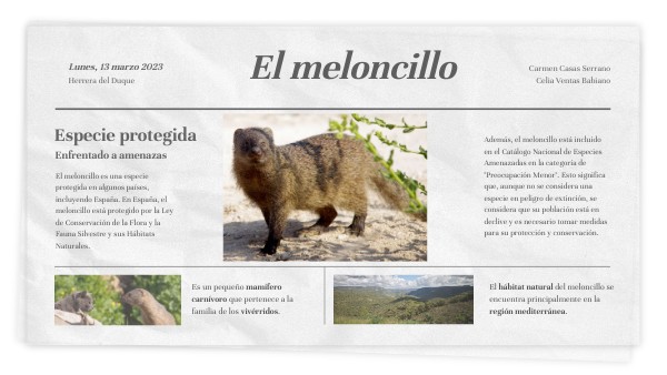 Además, el meloncillo está incluido en el Catálogo Nacional de Especies Amenazadas en la categoría de "Preocupación Menor". Esto significa que, aunque no se considera una especie en peligro de extinción, se considera que su población está en declive y es necesario tomar medidas para su protección y conservación.